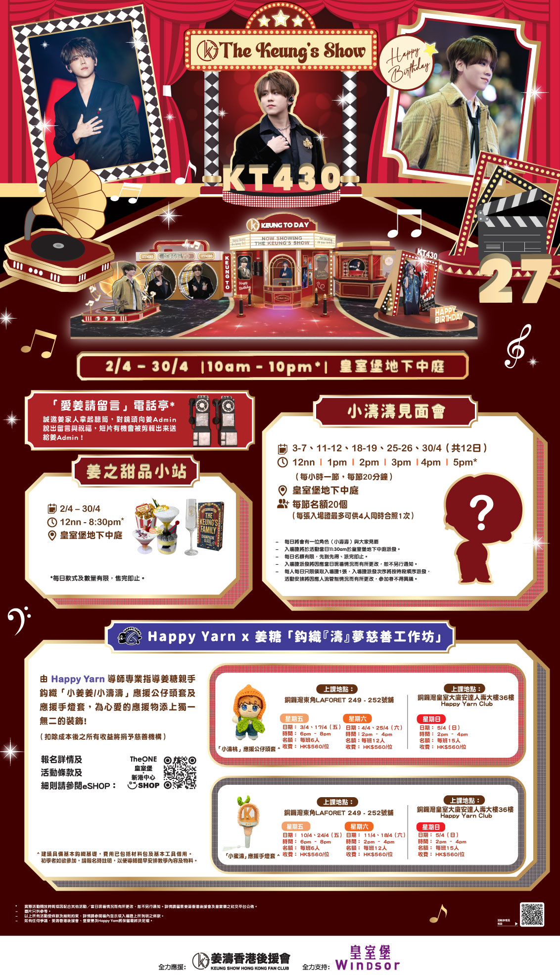 *以上活動實際開放時間或因配合其他活動而更改,詳情請留意姜濤香港後援會及皇室堡之社交平台之公佈。